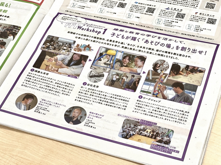 福井新聞社が県内高校生に発行する「ふくいお仕事図鑑2026」の中で、Feel Fukui’s Fun 進路探求ワークショップ (主催:未来協働プラットホームふくい)の様子が紹介されました。建築と教育をテーマに大学の先生方とともに、講義や企業見学、ワークショップなどを実施しました。記事は下記リンクからご覧いただけます。